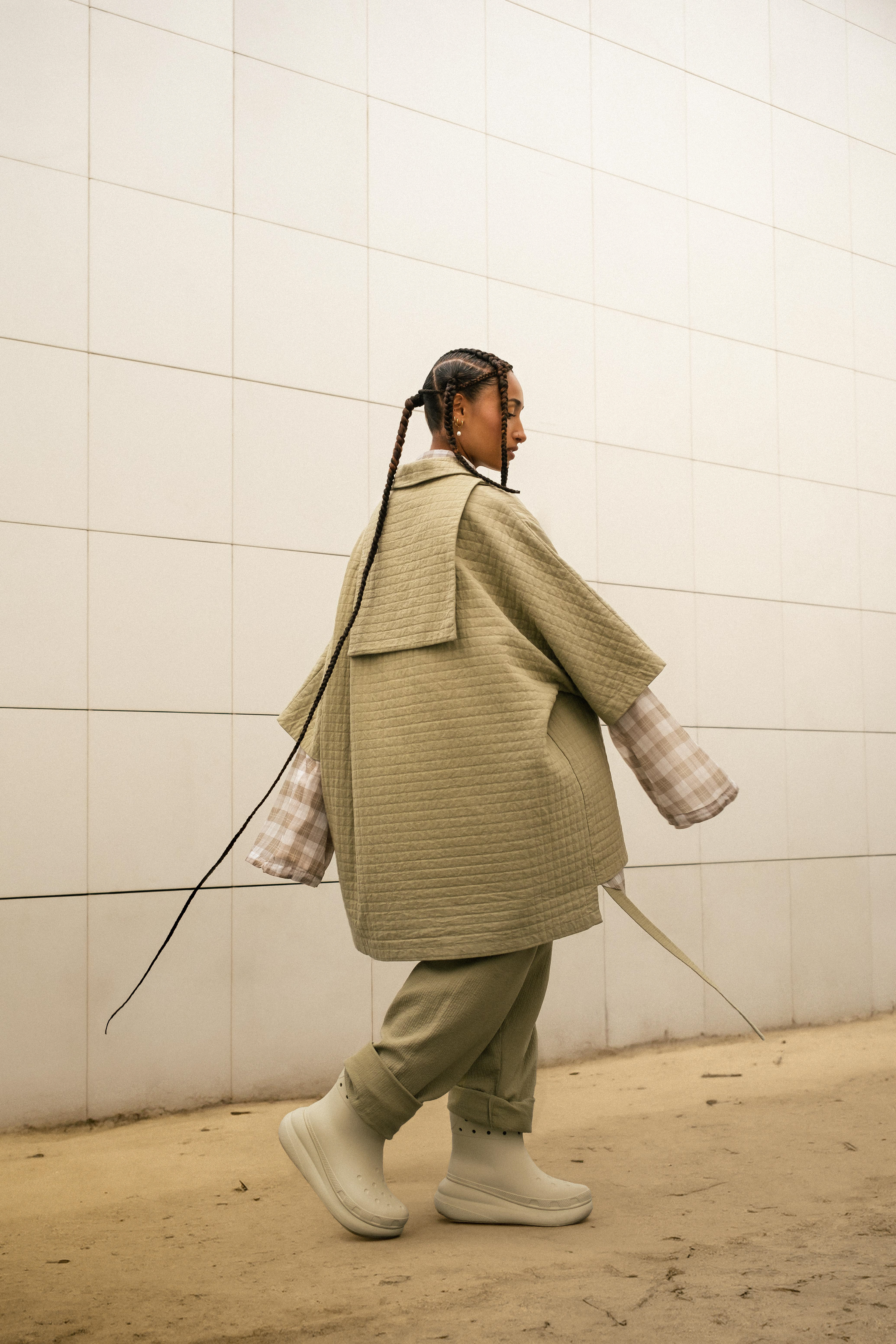 L’enjeu était de traduire visuellement l’identité intemporelle de la marque, tout en affirmant un univers fort et identifiable. Le choix de décors mêlant architectures et paysages minimalistes permet d’ancrer les silhouettes dans des environnements épurés, en cohérence avec le positionnement de Llossa.